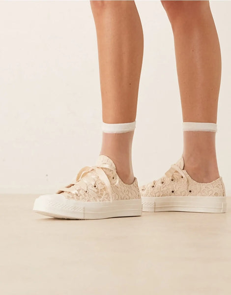 結婚式のバージンロードでも、街中の散歩でも、このレース装飾のConverse Chuck 70は注目を集めること間違いなしです。