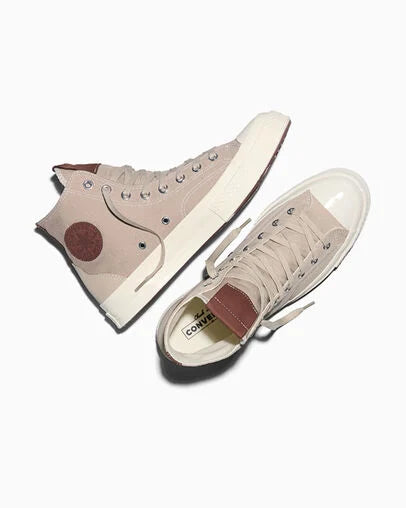 ・構築的なChuck 70のルックと履き心地を実現する、耐久性に優れたキャンバスアッパーとスエードオーバーレイ
