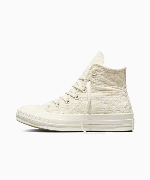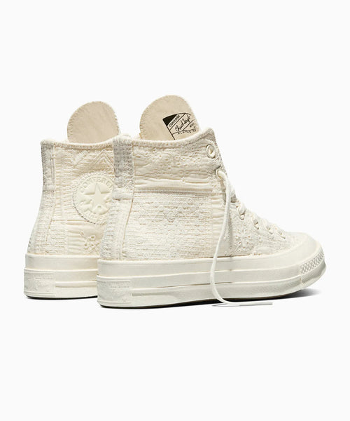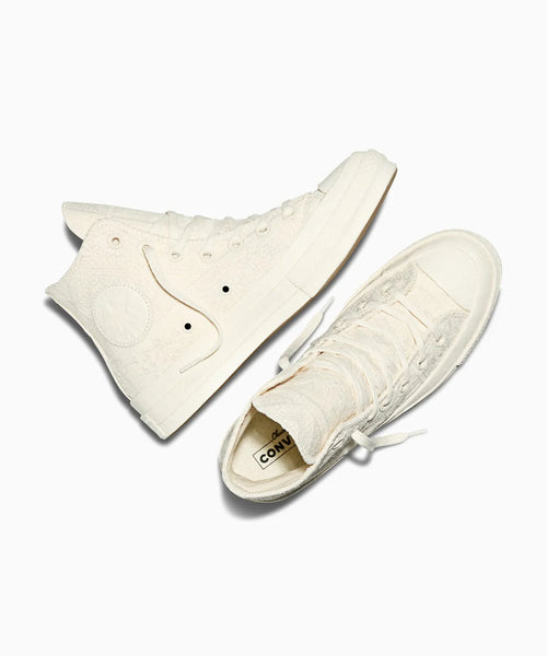 そのヘリテージを受け継いだチャック70がクロシェ素材で再解釈され、馴染みのあるシルエットに感覚的なアクセントを加えています。