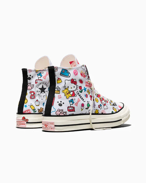 コンバースは、Hello Kitty And Friendsとともに、親友との思い出づくりをお祝いします。サンリオの人気キャラクターたちが勢ぞろいしたスクラップブック風プリントは、毎日をとびきりキュートに彩ります。